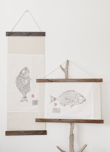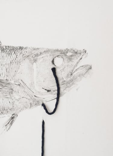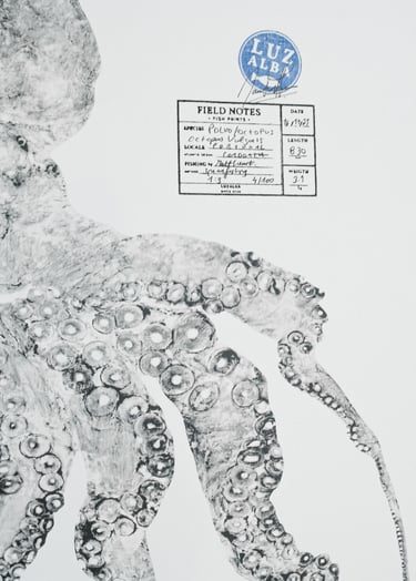 Inspired by the Japanese Gyotaku technique, LUZALBA developed her own practice by adapting its fundamental elements. These adjustments led her to a stronger concept: sustainability. At this point, art become a vehicle for exploration, as an opportunity to understand more about the ocean, marine life, the fishing industry, and conscious food consumption.
