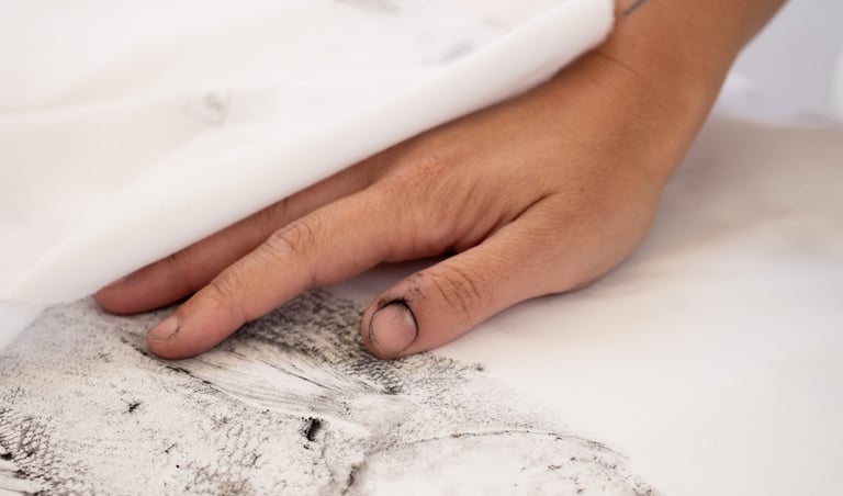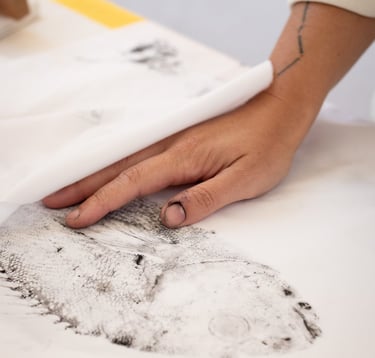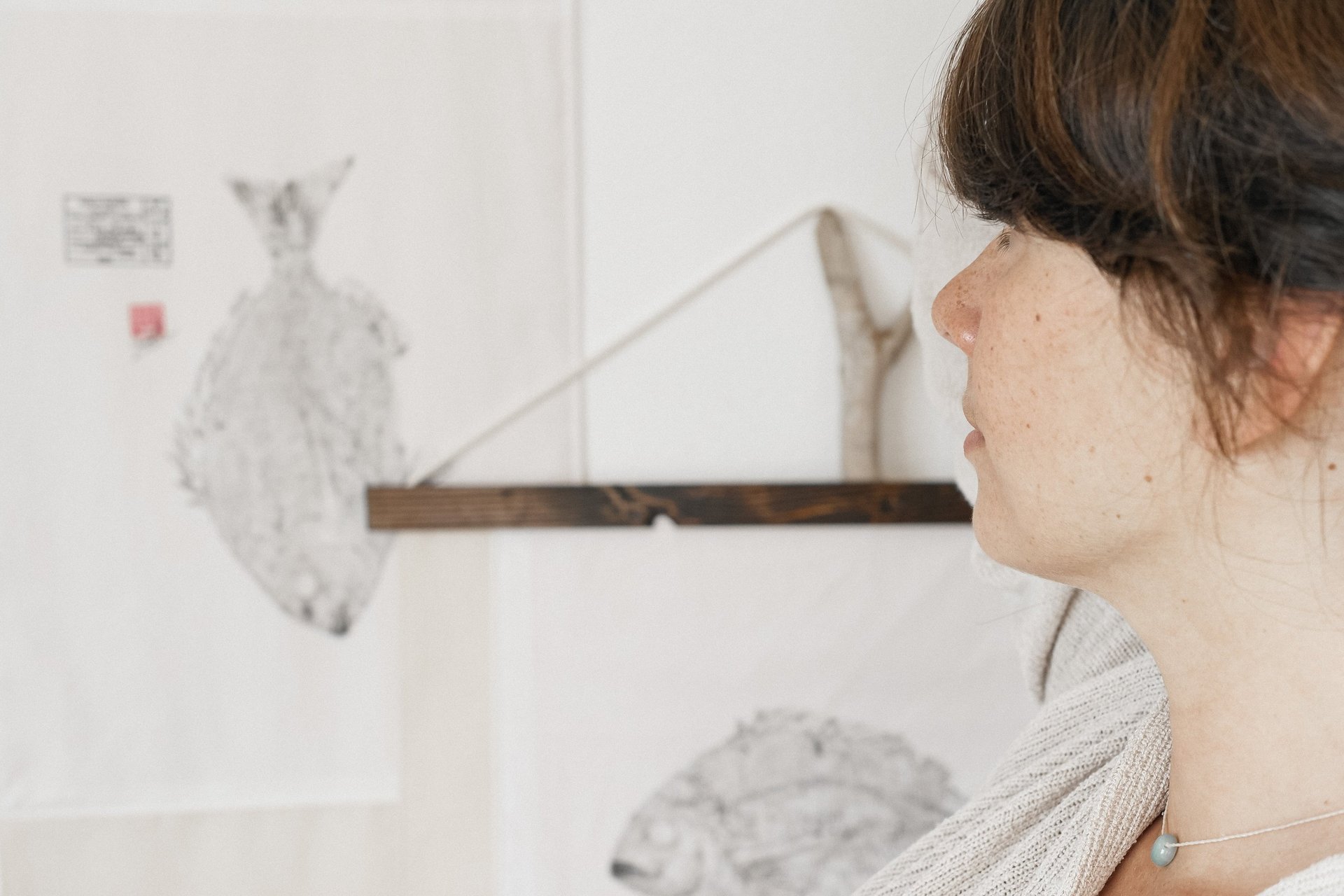 Upon returning to Portugal, she established her studio on the southwest coast of the Algarve. Working under the artistic name LUZALBA® (registered trademark), she developed a practice focused on sea culture and ancestral printmaking techniques. This vision led to the creation of the Fish Prints project, through which she explores and transforms local natural resources into unique artworks and design pieces.